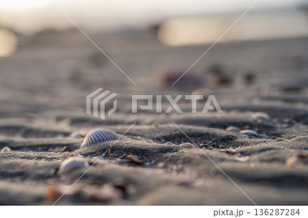 砂浜に埋もれる貝殻