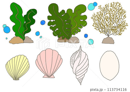 海 海中 海藻 貝殻 ベタ塗りのみ