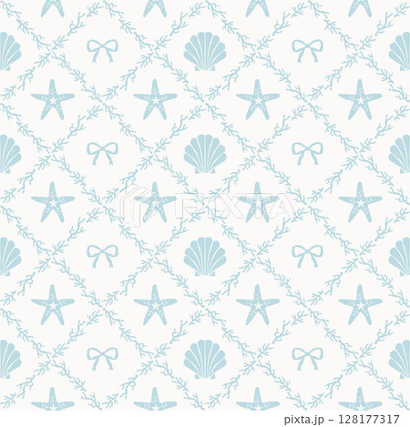 貝殻とリボン シームレスパターン