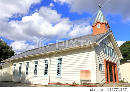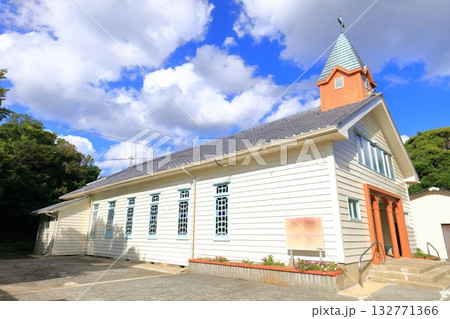晴天の五島列島福江島のカトリック貝津教会