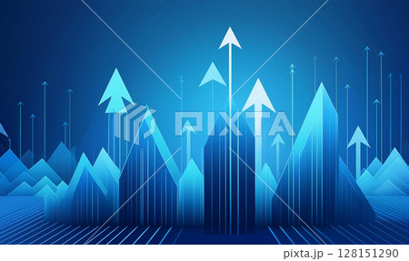 Growth chart showing increasing trends in sales with colorful bars and an upward arrow