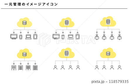 クラウド、一元管理のイメージアイコンセット、ベクター素材
