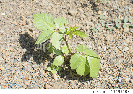 道ばたに這い出るヤブカラシの葉
