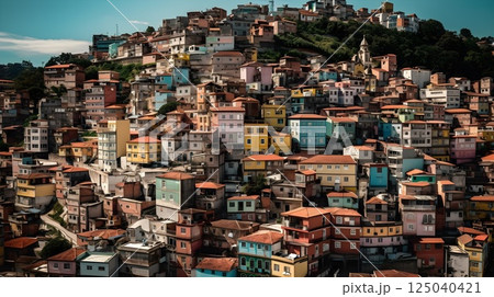 Favela of Rio de Janeiro, Brazil. Colorful houses in a hill. Zona Sul of Rio.