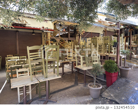 Outdoor cafe, favela, in Thessaloniki, Greece. Mainly visited by not rich locals, tourists rarely seen here. Thessaloniki, Greece