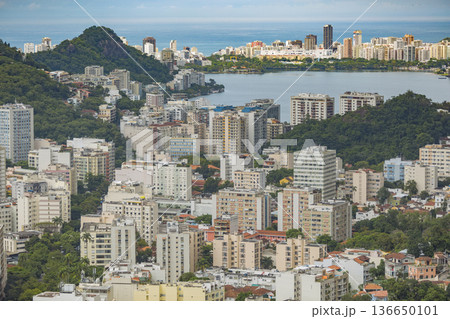 Mountains with favelas houses tropical nature Rio de Janeiro Brazil.