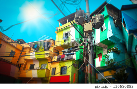 Favela of Rio de Janeiro, Brazil. Colorful houses in a hill. Zona Sul of Rio.
