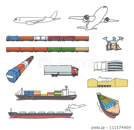 生活を支える物流、ロジスティクスと働く人々 セット イラスト素材