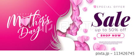 Mother's Day Sale Banner Design with Paper Heart and Woman Face Silhouette on White Background. Vector Seasonal Discount Offer Illustration with Typography Lettering for Voucher, Online Ads, Flyer