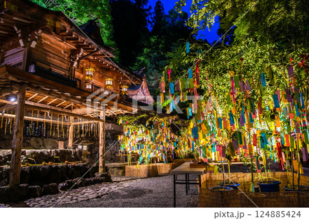 新緑の京都貴船神社 七夕笹飾りライトアップ 参道の赤い鳥居 京都観光スポット