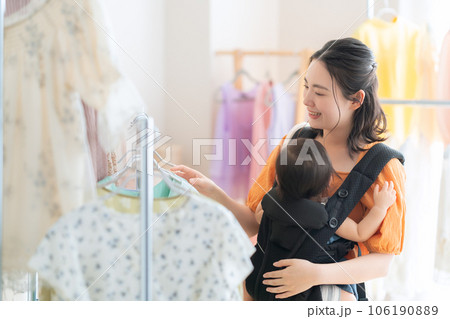 お店でショッピングをする若い親子