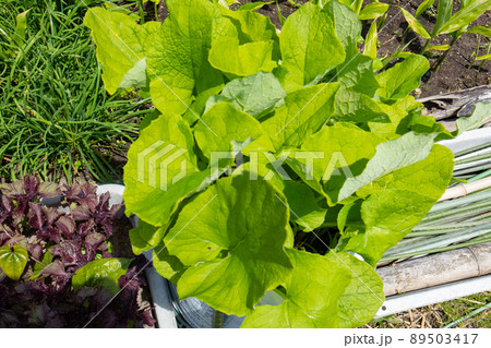 冬の家庭菜園の(白菜)