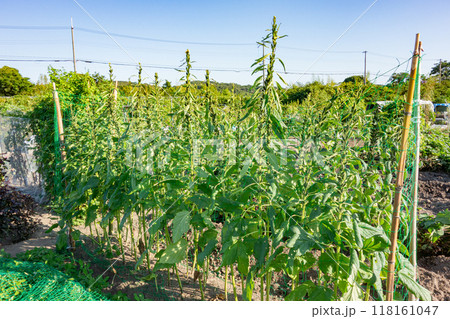 9月の家庭菜園で収穫前の金ゴマ