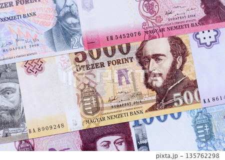 Hungarian forint, cash, currency of Hungary, banknotes for financial transactions. Hungarian forint