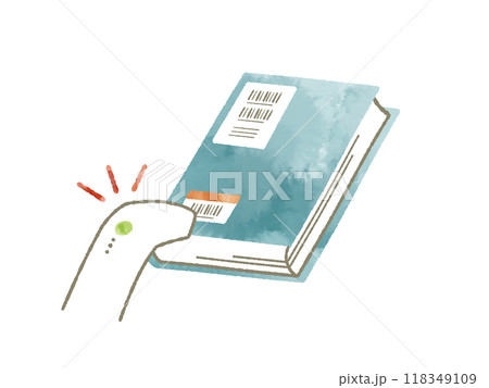 図書館の蔵書とバーコードリーダー-水彩