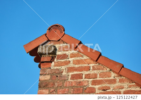 Old brick chimney and roof, retro architectural scene