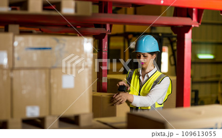 物流倉庫で働く外国人女性