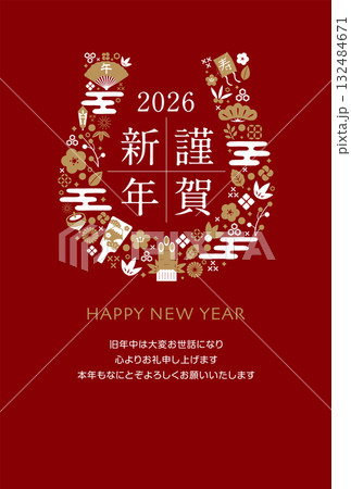 2026 令和8年 年賀状テンプレート / 午年エンブレム風