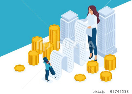 Isometric Bright site concept Registration and issuance of money secured by real estate, mortgage loan. Concept for web design