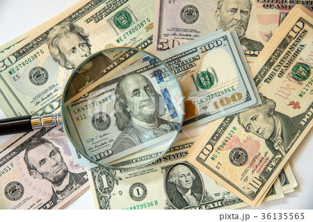 基軸通貨米ドルのお札と虫眼鏡