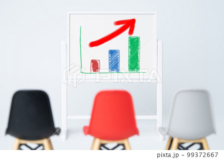 ホワイトボードに描かれた伸びる棒グラフ