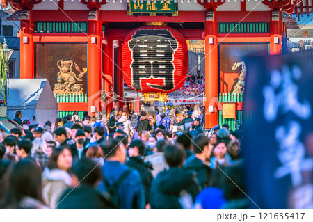日本の東京都市景観 元日。お正月を迎えた浅草寺。脅威の人出=令和7年1月1日
