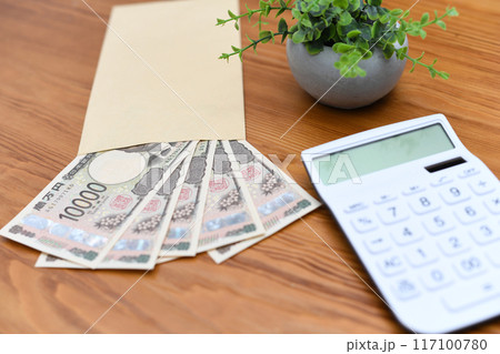 12月のカレンダーと一万円札 ボーナス 年金支給日