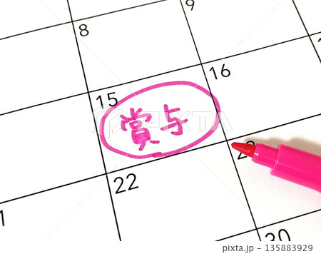 賞与 ボーナス 賞与袋 カレンダー 6月 上期 封筒