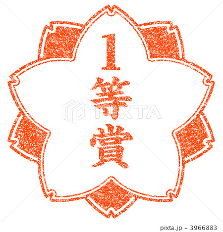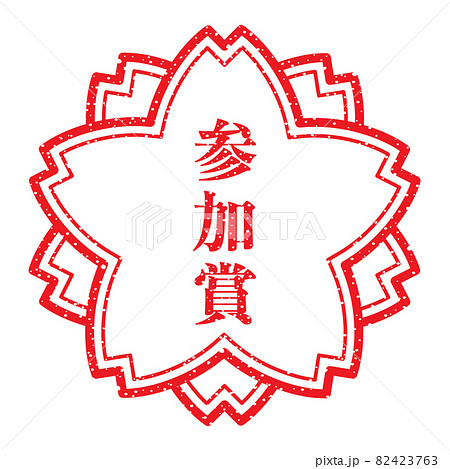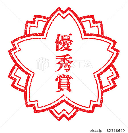 祝 受賞(桜の花の形をしたスタンプ)かすれた文字