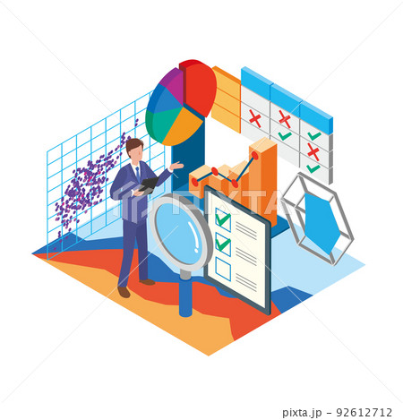 ビジネスマンと分析グラフのイメージイラスト