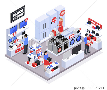 Isometric black friday composition home appliances store
