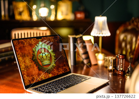 豪華な書斎のノートパソコン
