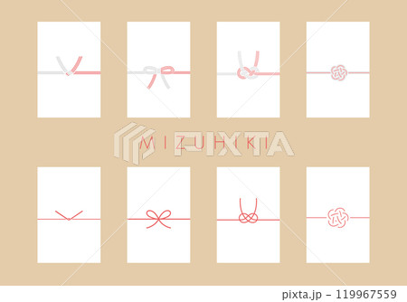 水引のシンプルなイラストのセット 熨斗 和 日本 お祝い 蝶結び リボン 贈り物 お正月