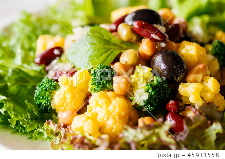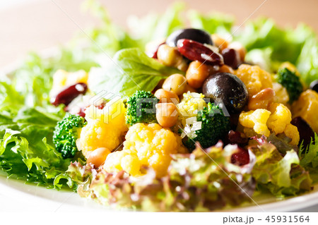 家庭的で素朴な自宅調理の「蒸し豆のサラダ」