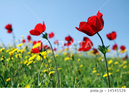 ネモフィラ畑のアネモネ 人気のアネモネ 春の花素材
