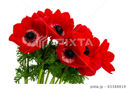 Bouquet of red anemones on a white background isolate