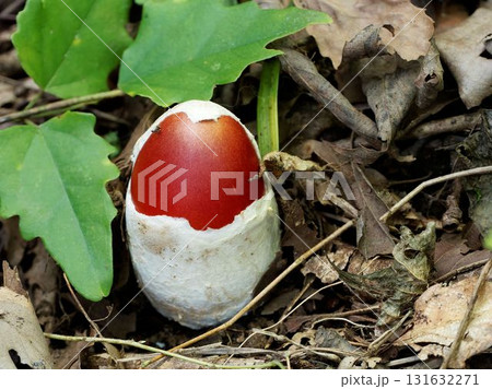外皮膜(つぼ)に包まれたタマゴタケの幼菌