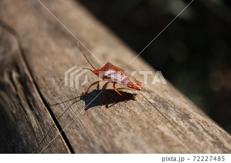 生き物 昆虫 ヒメハサミツノカメムシ、メスです。オスはお尻のハサミがあるのですが・・・
