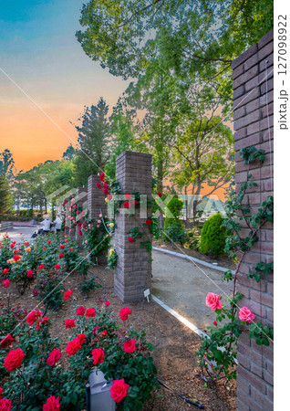 夕景のバラ園、伊丹市荒牧バラ公園、5月13日、日本