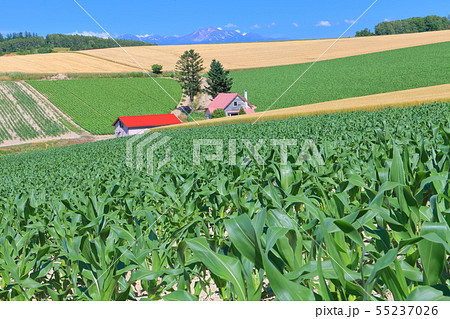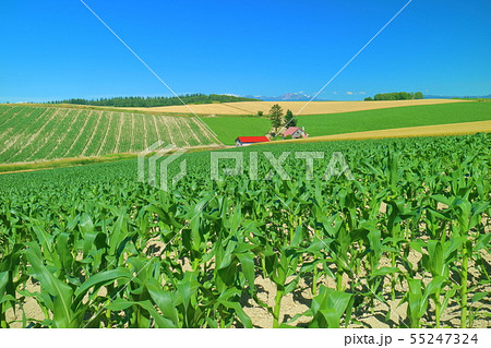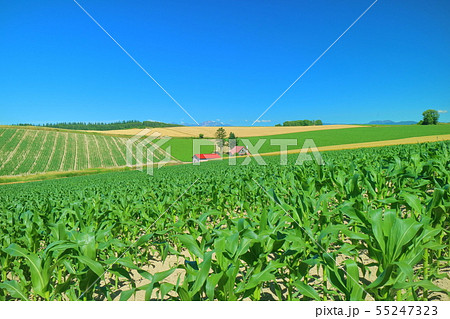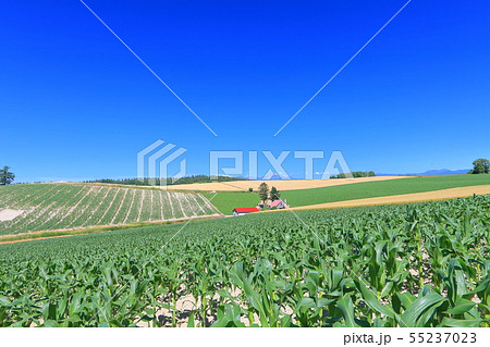 北海道 夏の青空 美瑛の丘
