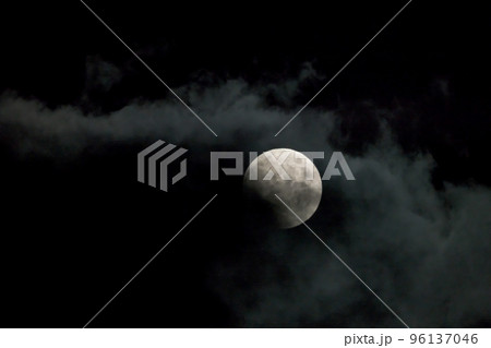 2022.11.8 皆既月食の月に雲がかかり始めた