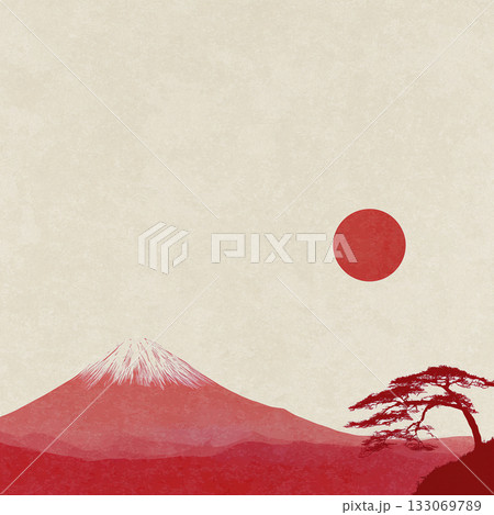 シンプルな年賀状素材 赤富士と日の出