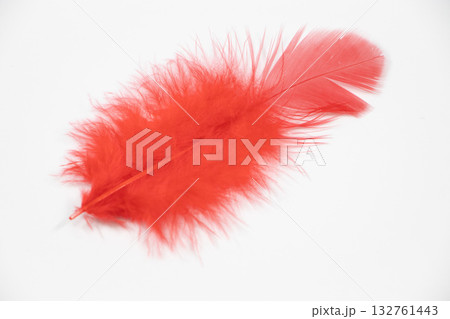 Feather on red background
