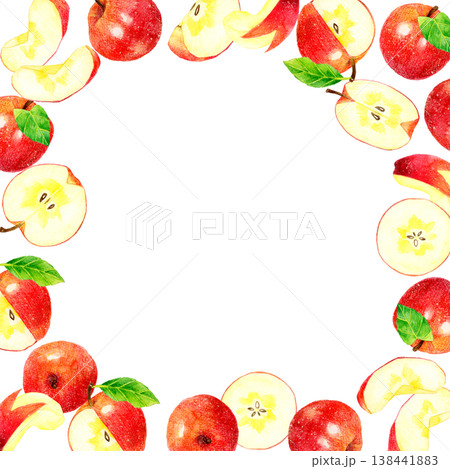 色々な剥き方のりんごのフレーム 果物・フルーツの手描き水彩イラスト背景素材