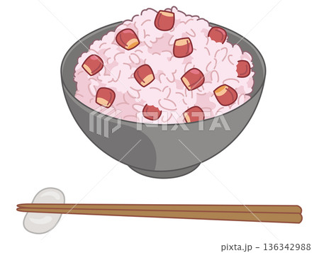 赤いとうもろこしの炊き込みご飯のイラスト(お箸と箸置きの追加)