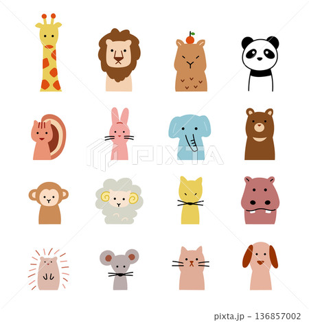 手書き風 顔を出すかわいい動物たちのフレームのセット
