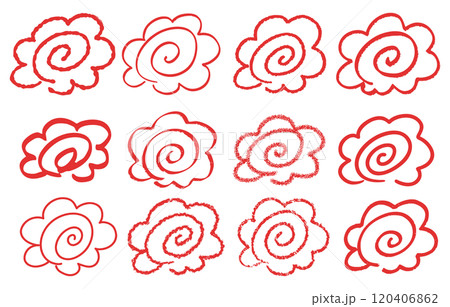 様々な手書きの花丸セット(赤)