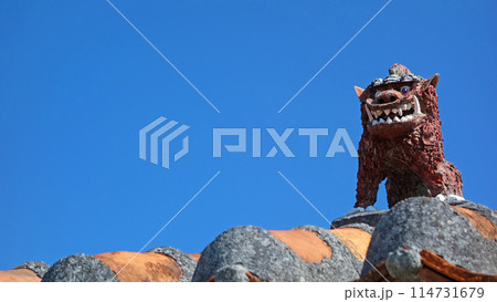 赤瓦の屋根とシーサー 沖縄県 竹富島
