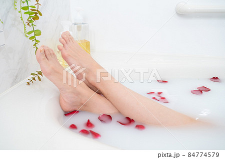 Beauty portrait of beautiful model woman in milky bathtub surrounded by flowers.Macro.AI Generative.