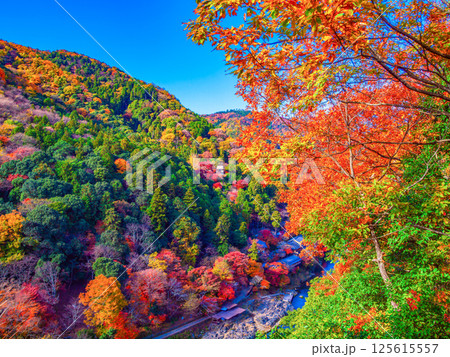 京都 紅葉の嵐峡 嵐山公園展望台からの眺望